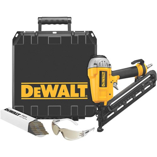 Factory-Reconditioned Dewalt D51276R 2-1/2-in 15-Gauge Finish Nailer Lightweight magnesium body (only 3.85 lbs.) reduces user fatigue. Internal piston catch for consistent maximum power on every shot. 360 degree exhaust cap channels exhaust air away from the work and user. Injection molded grip is durable and comfortable, and also resists ripping or tearing. Adjustable belt hook allows tool to hang on belt. Rear loading lock and load or load and lock magazine provides quick and easy fastener reload. Tool-free depth adjustment for proper setting of nail heads. Low-profile no-mar pad with swept-back contact trip for increased visibility.